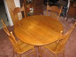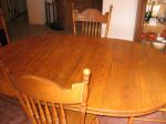Oak Dinette set, Pedestal Ball & claw style, The table has 2 leaves that expand your 48 inch round to a huge 70 1/2"X 48" oval. There are 4 lovely pressed back chairs with a wheat and ribbon design. The set is in very good condition but could use a little TLC to make it perfect.
